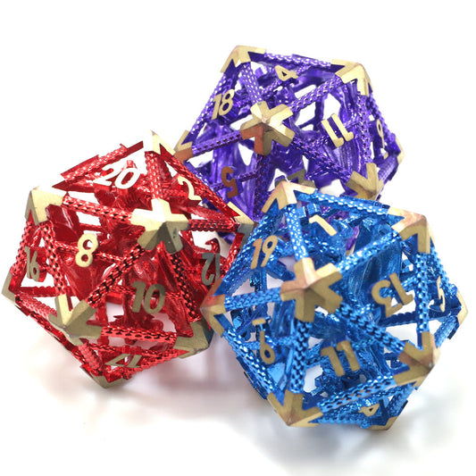 Metal D20 three-dimensional skeletonized dragon Dice