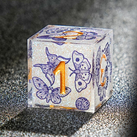 Noctilucent Black Butterfly Resin Dice Set
