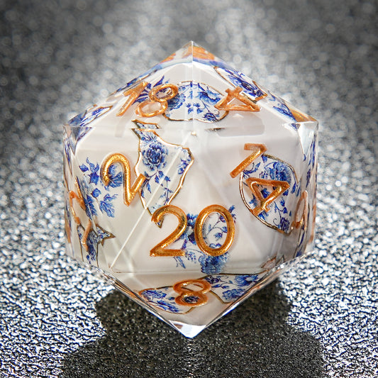 Resin Solid Blue and white porcelain flower Dice Set