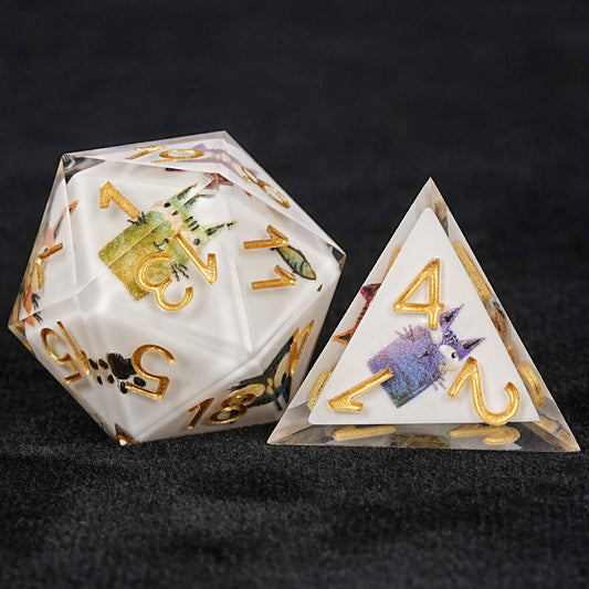 Purple Frosted Gemstone+Colorful Numbers D&D Dice Set