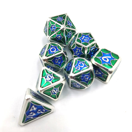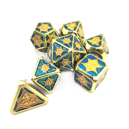 Yellow Blue Metal Solid Petal Pattern Dice Set