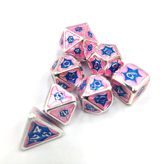 Pink Blue Metal Solid Petal Pattern Dice Set