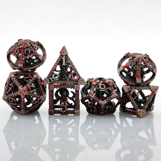 • Juego de 7 dados de pulpo huecos de metal en 3D, mancha de sangre