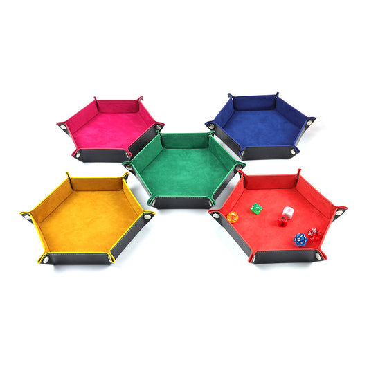Bandeja de dados de cuero PU plegable con forma hexagonal para juegos de mesa de rol de mazmorras y dragones