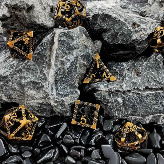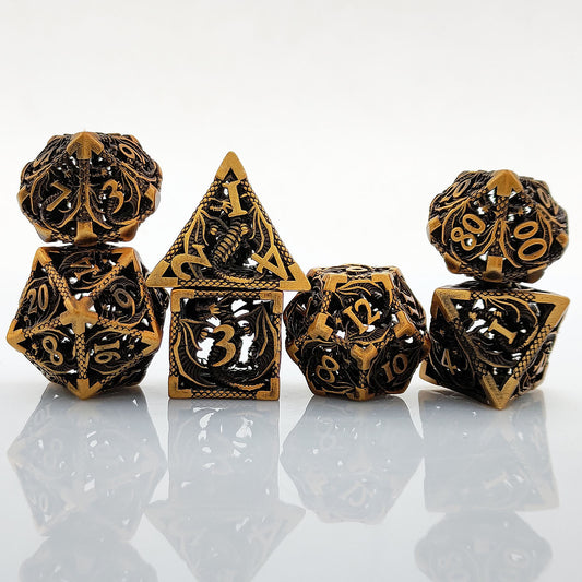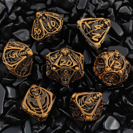 Juego de 7 dados de metal Hollow Devil, dorado antiguo