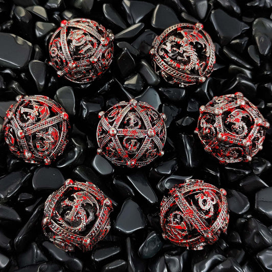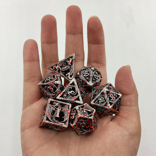 Juego de 7 dados de metal hueco para pterosaurio, mancha de sangre
