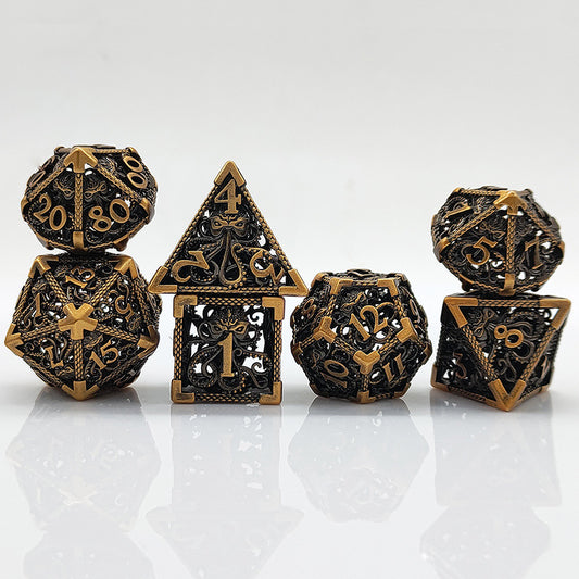 Juego de 7 dados de metal huecos en forma de pulpo en 3D, dorado antiguo