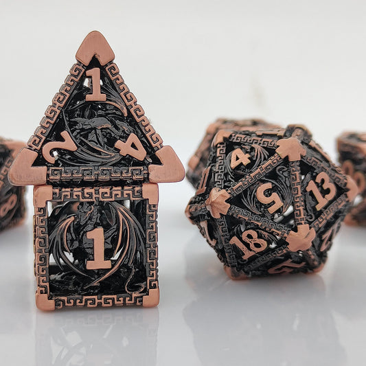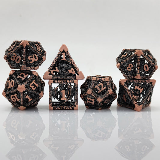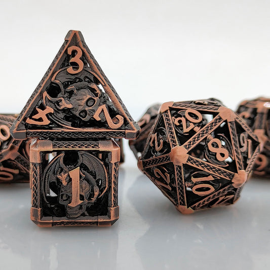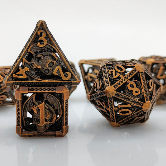 Juego de dados de dragón hueco de metal, cobre rojo antiguo