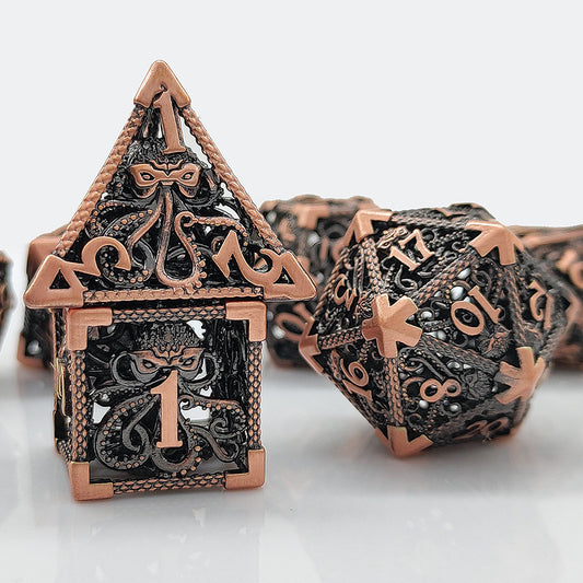 Juego de 7 dados de metal con forma de pulpo hueco, cobre rojo