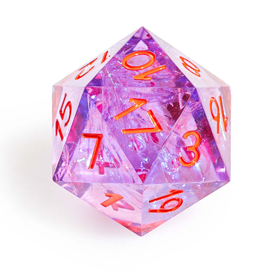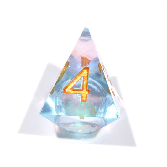 Juego de dados de resina con núcleo líquido, rosa, azul y números dorados