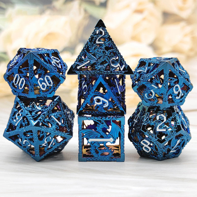 - [Juego de dados DND de 7 piezas]: un juego de dados de metal huecos de 7 piezas, incluidos D4, D6, D8, D10, D12, D20 y D%. Estos juegos de dados de 7 piezas están hechos a mano por un joyero que diseña productos de juego especializados. Son impresionantes. Se crean con una calidad excepcional y son el regalo perfecto para cualquier jugador de DND, DM o entusiasta de otros juegos de mesa o de mesa.