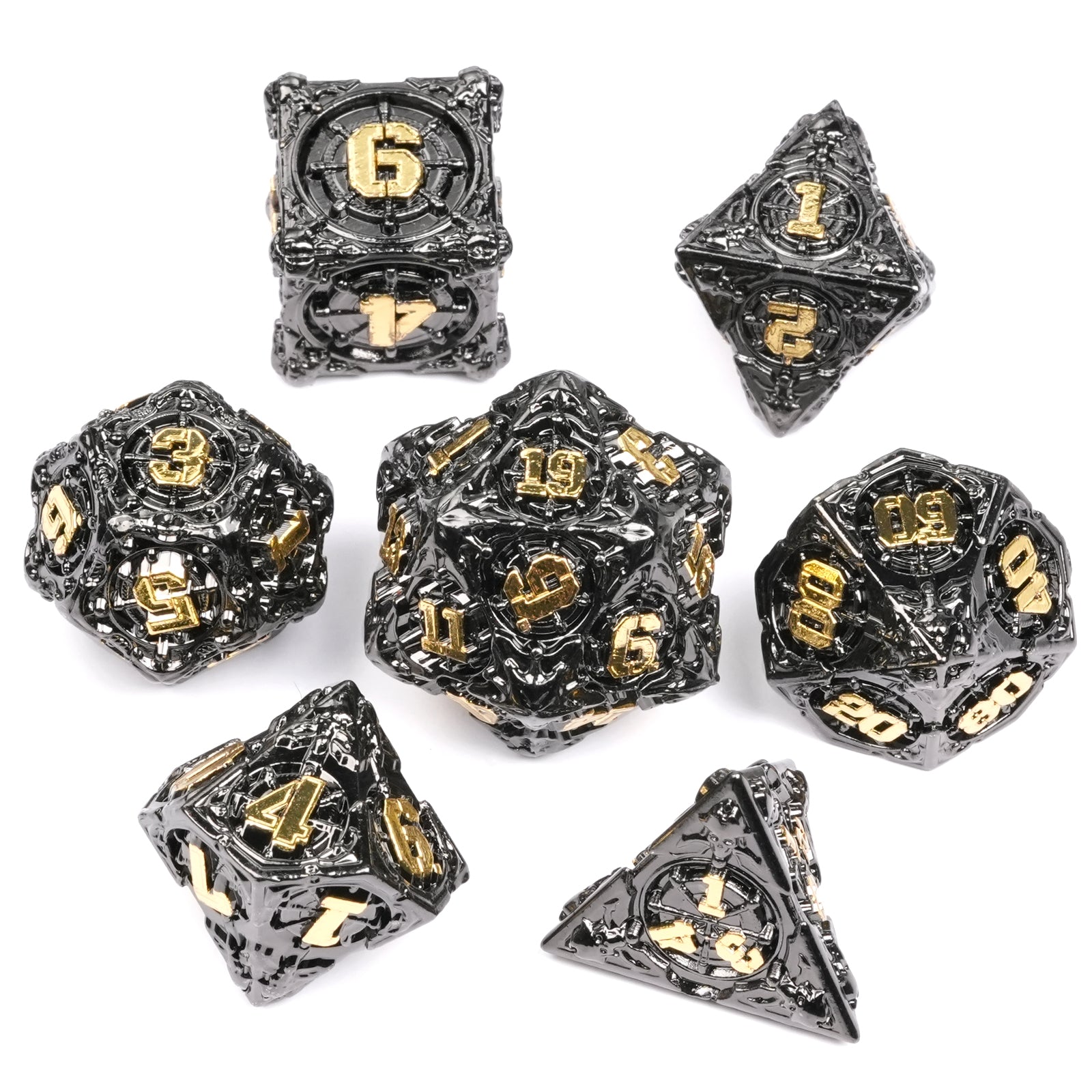 [DND 7Pcs Dice Set]: One set metal solid dice total 7 pcs, including D4, D6, D8, D10, D12, D20 and D%. These 7-piece dice sets are hand-made by our company. They are stunning. They are created with exceptional quality and are the perfect gift for any DND player, DM, or enthusiast of other board or table games.